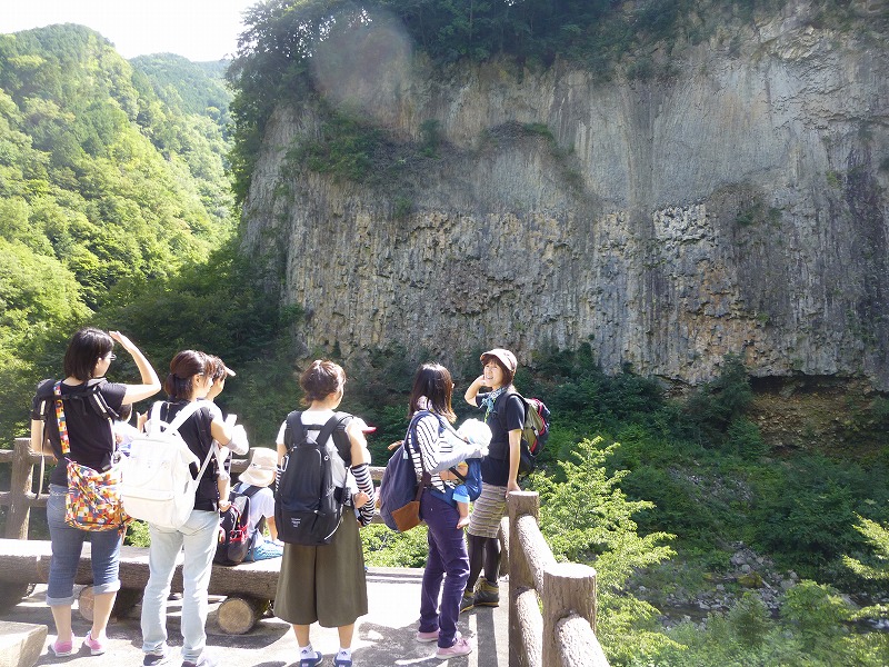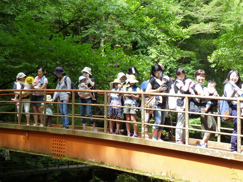8組の乳幼児親子と小学生とその保護者6名が参加し、小坂200滝のガイドさんと一緒に滝めぐりを楽しみました。 マイナスイオンをたっぷり浴びながら、頑張って滝見遊歩道を歩きました。