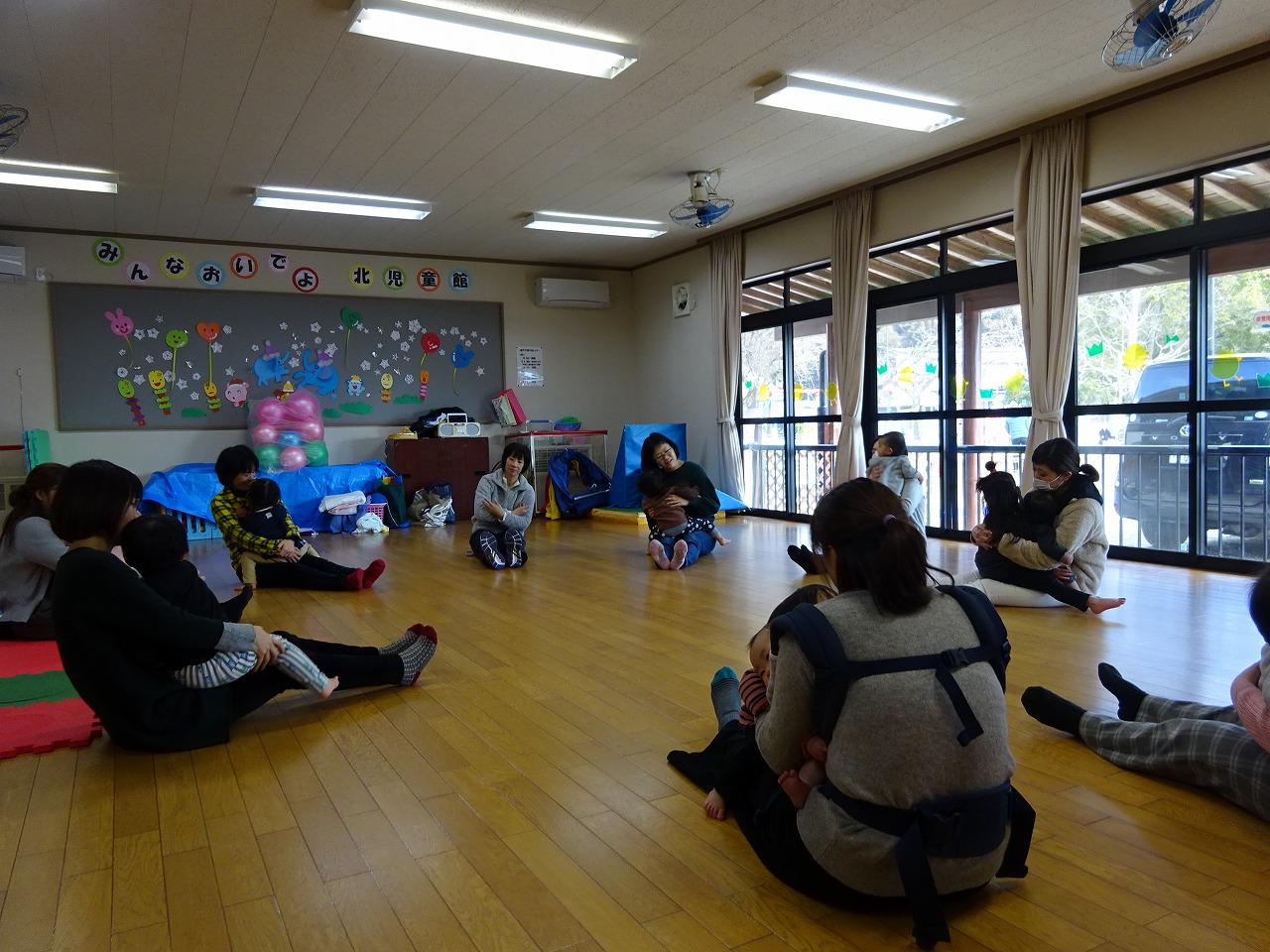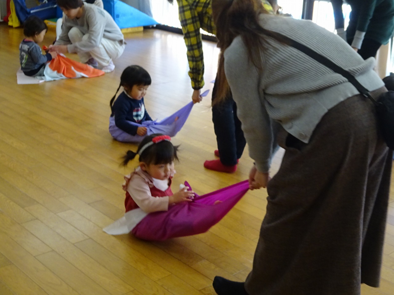 熊崎淑さんに講師として来ていただきました。ボールや風呂敷など身近にあるもので遊んだりして、親子で楽しく参加することができたようです。
