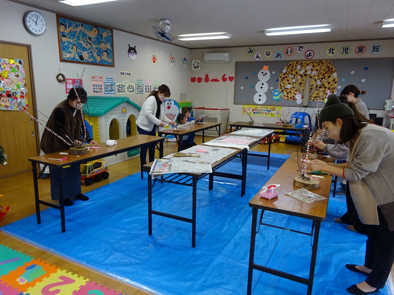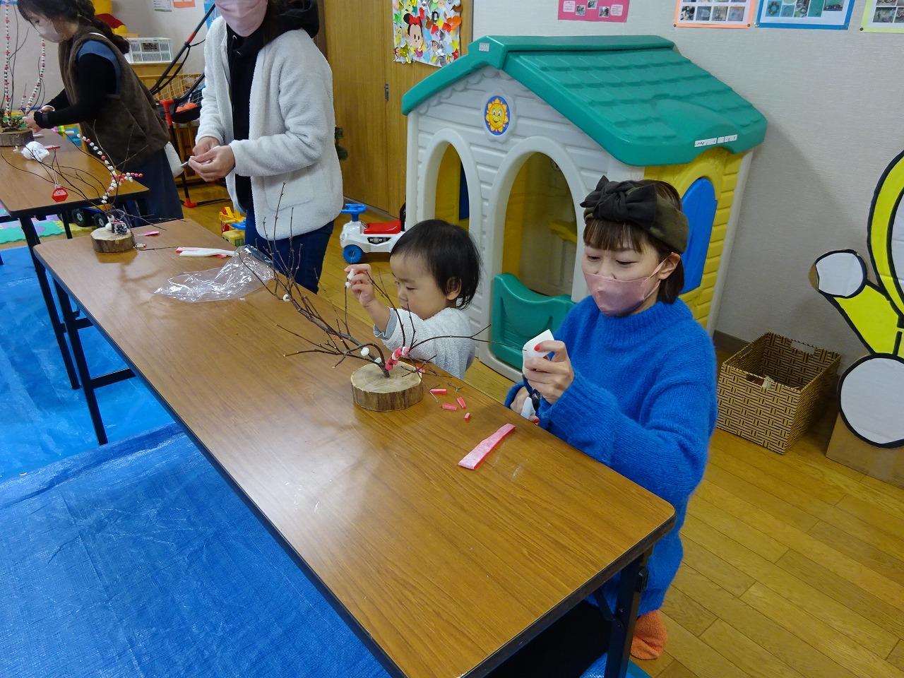12月23日(金)花もち作りを行い、9組の親子の参加がありました。花もちは、昔から雪深く花のない飛騨地方に伝わる伝統的なお正月装飾用品で、その年の五穀豊穣を願って飾られるものです。初めて作るという方も何名かおり、講師の内木孝之さんにお餅の付け方を教わりながらとても集中して行っていました。最近では家で作る方も減っているようなので、飛騨地方ならではの昔から伝わる伝統を大切にし、子ども達にも伝えていけるといいですね。