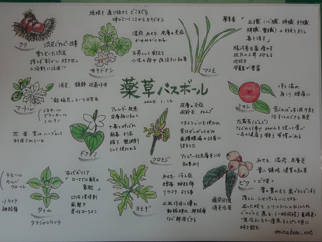 2月12日 講師に皆越さんをお招きして薬草バスボールを作りました。飛騨地方にある10種類の薬草を準備して下さった皆越さんに教えて頂きながら、自分の身体の状態に合わせた薬草を選び、布巾着に詰めていきました。お子さんと薬草の香りを楽しみ、ヒーリング効果抜群でした。自宅に帰ってからは完成したバスボールでゆっくりお風呂時間を楽しめるといいですね♪