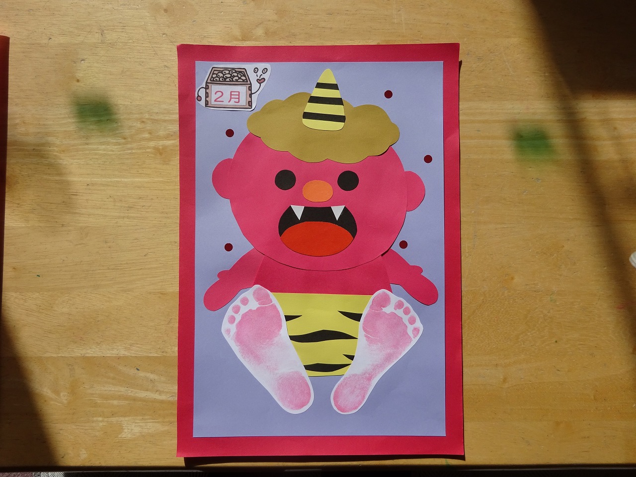 あかおに・あおおに・みどりおになどカラフルな可愛い鬼が完成しました。