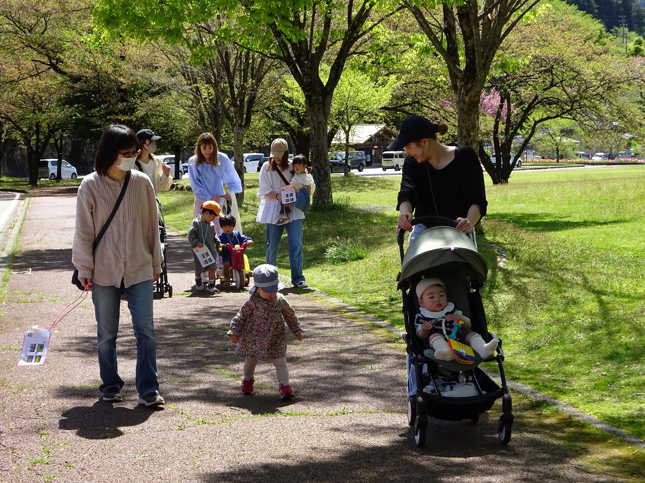 飛騨川公園に出かけ、春の日差しを浴びながら親子でスタンプラリーを楽しみました。公園内で春を見つけながらスタンプカードにあるお題に挑戦。全部クリアーすると、ミッキーやミニーのご褒美メダルがもらえました。好きなメダルを選び嬉しそうな子どもたちの笑顔が可愛かったです。春見つけ散歩楽しかったね。