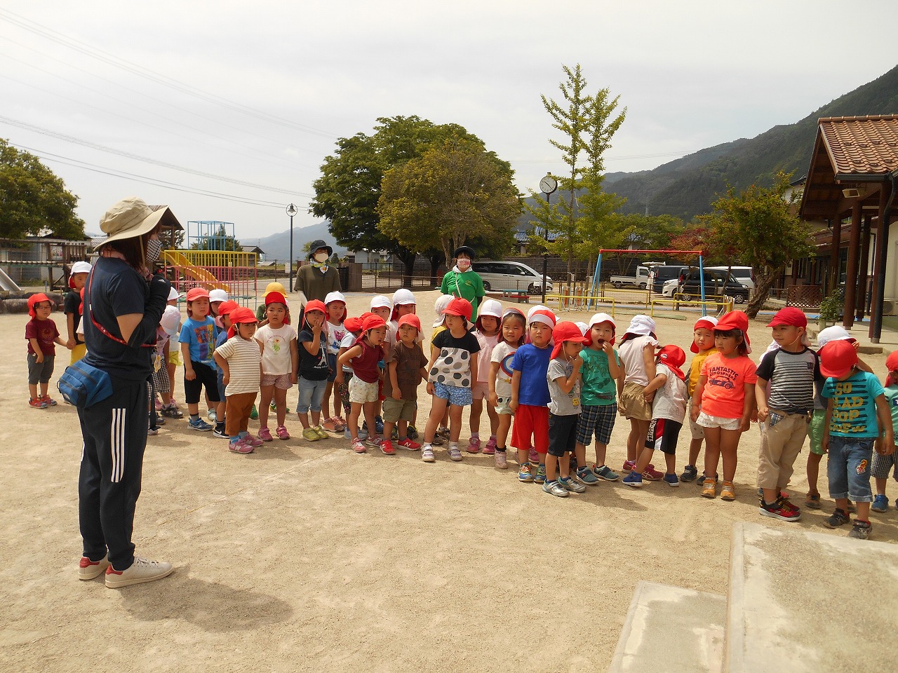 朝は畑やプランターの野菜に水をあげ、草取りもしてくれました。「大きくなってる!」と生長を喜び、これからの生長もとても楽しみです。今日は年中さんと一緒に散歩に行ってきました。年中さんと手をつなぎ、車が通る道ではサッと車道側へ。年下の子を気遣いながら歩いてくれました。また虫に夢中な子が多く、午後からは家から持ってきたカブトムシ、クワガタムシ等をみんなで図鑑を見ながら観察していました。いろんなことに興味を持って楽しく一日を過ごしました。