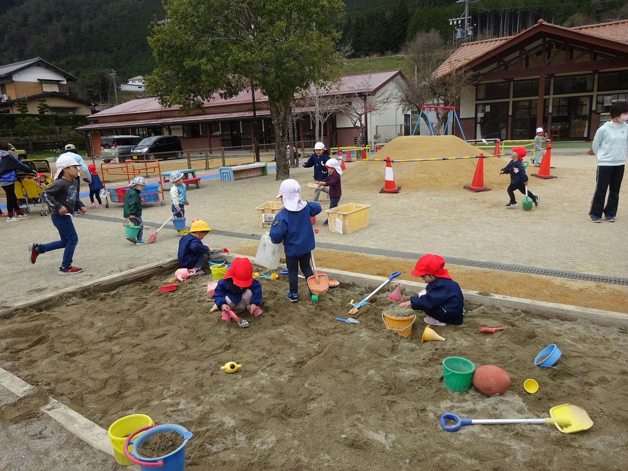 今日から保育が始まりました。年少さんの慣らし保育一日目は、おうちの人と笑顔で別れ、楽しく半日を過ごすことができました。