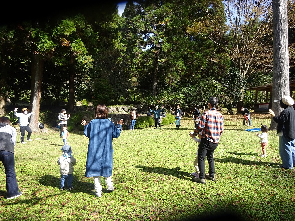 未満児さんは親子で桜谷公園へ行きました。親子で自然物を見つけ、会話をしながらスタンプラリーを楽しんだり、子どもたちの大好きなアンパンマンの曲に合わせ体操をしたり楽しい時間を過ごしました。