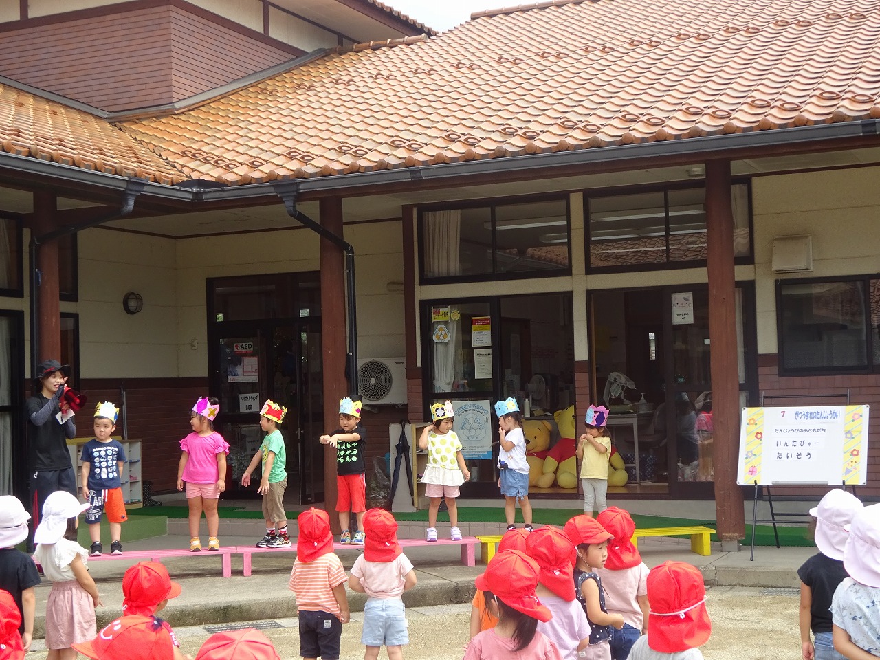 8月生まれのお友だちは年長さん一人でした。クラスのみんなでハッピーバースディのうたを歌ったり |