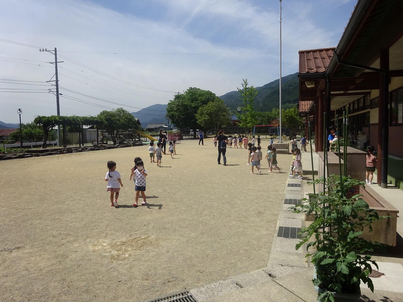 今まで会えなかった友だちとも今日から一緒に遊べる!と楽しみにしていました。嬉しさのあまりじゃれ合うことも・・・でも密にならないようにと子どもたち同士で気をつける姿もありました。 |