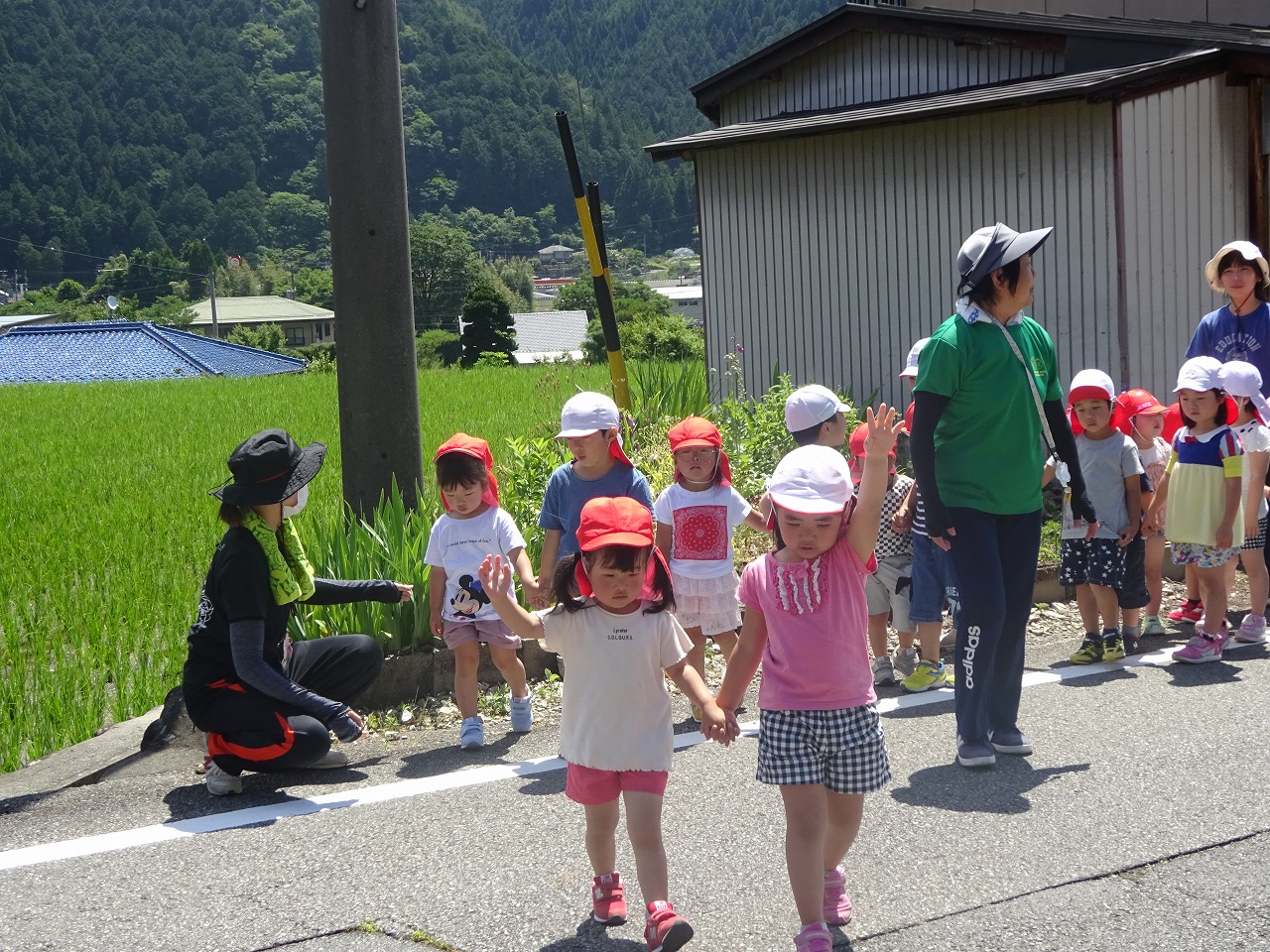 年中さんと年長さんで「湧水の里」まで散歩に行きました。 |