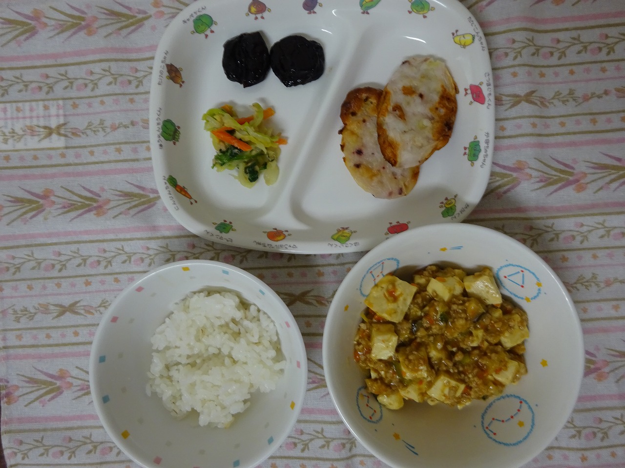 11月17日(金)給食 ・ごはん ・いかのたっぷり小判 ・かわりおひたし ・マーボー豆腐 ・プルーン