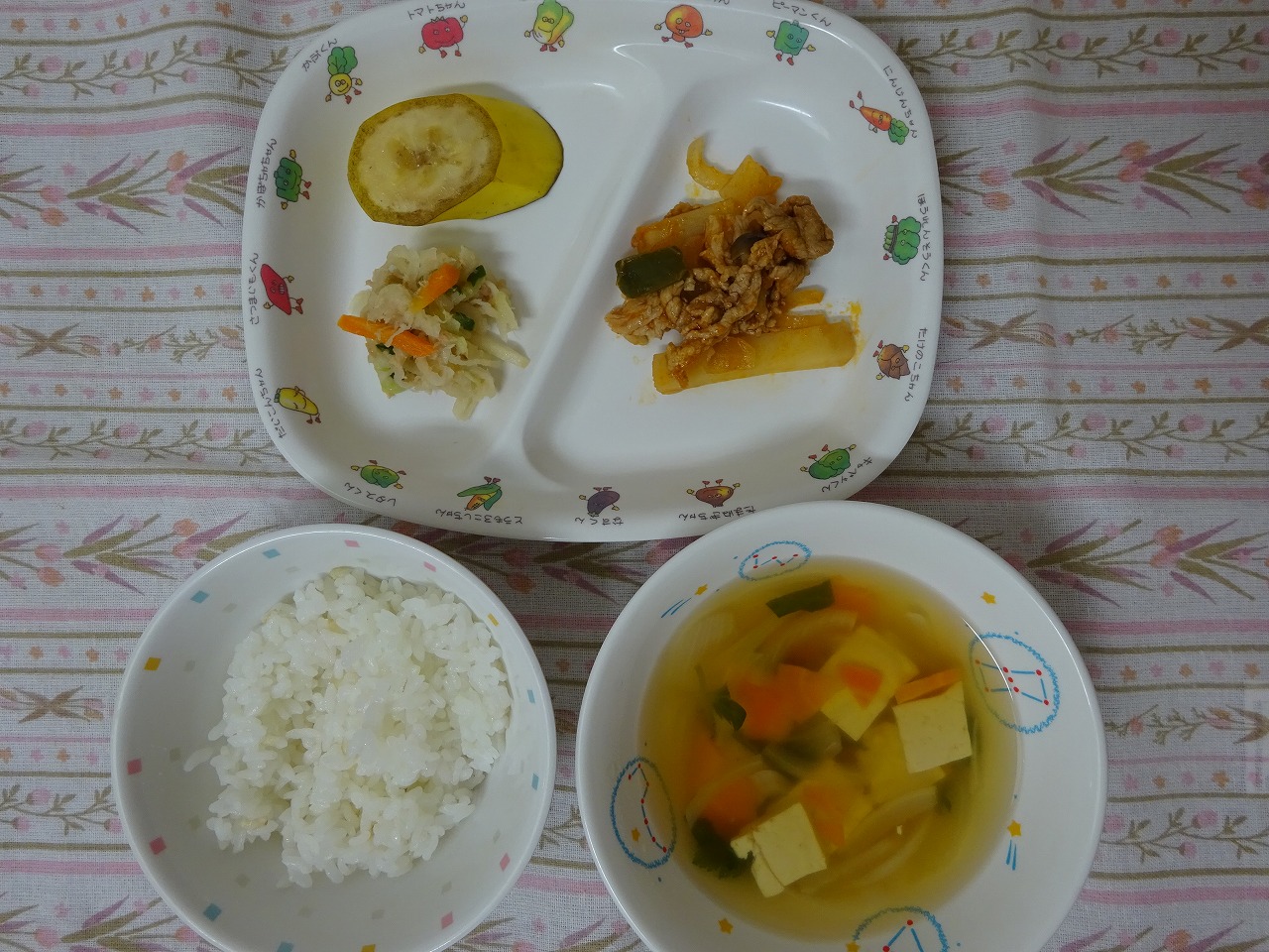10月5日(木)給食 ・ごはん ・ポークケチャップ ・切干大根サラダ ・すまし汁 ・バナナ