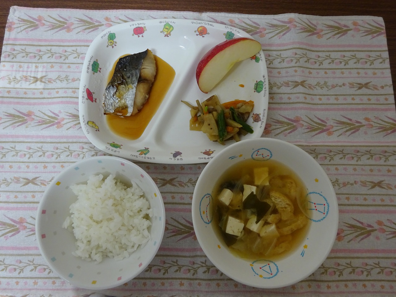 10月11日(水)給食 ・ごはん ・さわらの照り焼き ・ごもくきんぴら ・みそ汁 ・りんご