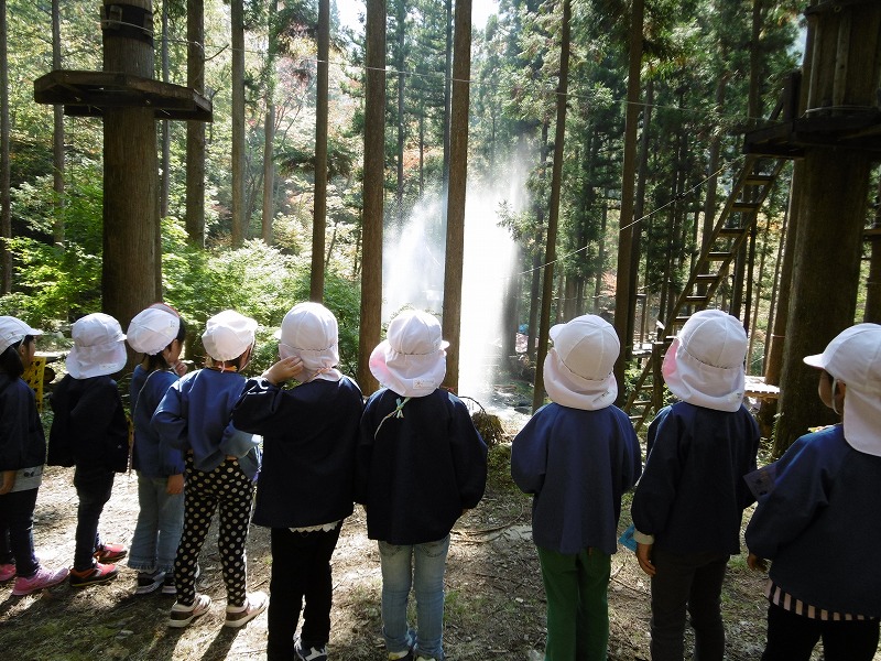 澄み切った秋空の中、年長さんはバスに乗って馬瀬の“森のニンジャ”へ行ってきました。