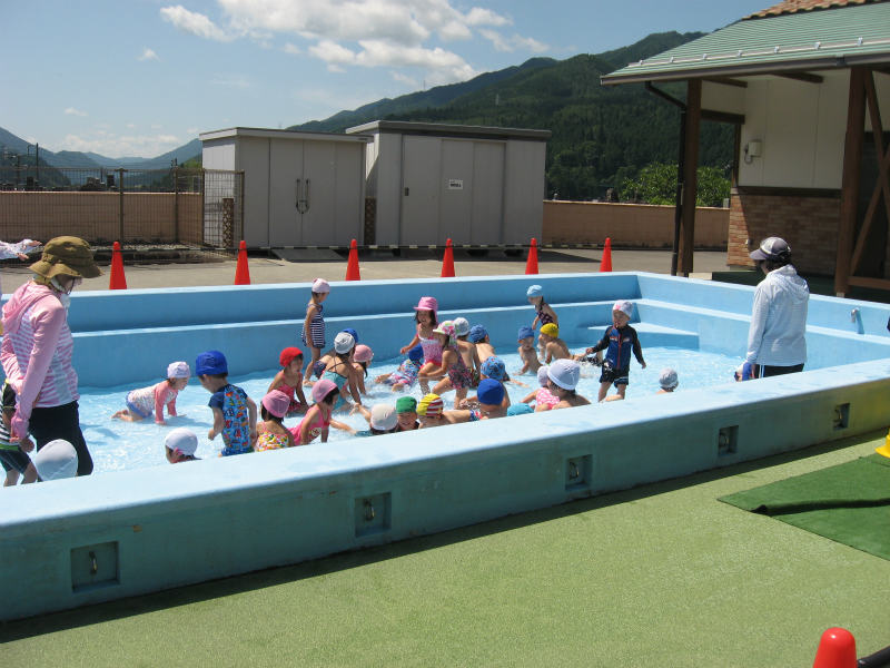 プールではバシャバシャと水しぶきをあげたり、身体を水につけたりして、プール遊びを思う存分楽しむ姿が見られました。