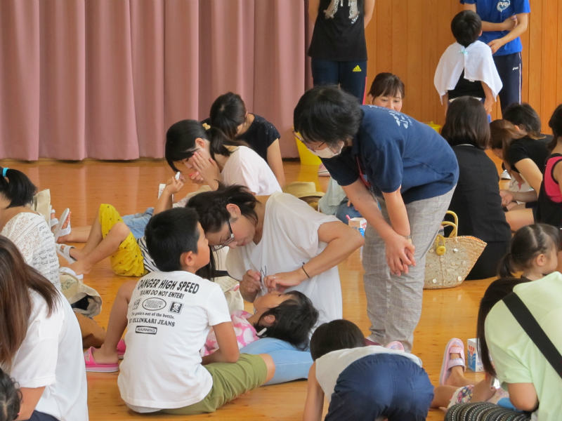 これから大人の歯に生え変わる時期を迎える子ども達、永久歯が虫歯にならないためにも仕上げ磨きの大切さを教えてもらいました。