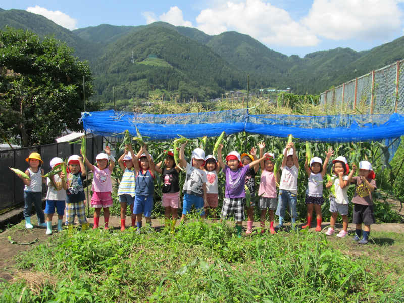 自分で育てたとうもろこしを大事そうに抱える姿はとてもかわいかったですよ。 一人一本お家へもって帰りますが、後のとうもろこしはおやつでいただく予定です。