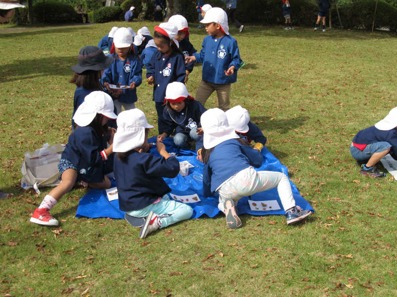 その後、葉っぱや木の枝、草花などを使って秋の自然を感じられる制作をして楽しみました。動物や乗り物などいろいろな物に見立てる子ども達の発想に感心しました。