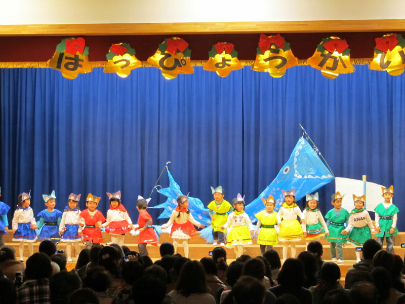 待ちに待った発表会、ワクワク楽しにしたり、ドキドキ緊張をしたりといろんな表情を見せてくれた年中さんの発表会でした。 年中さんになると、友だちと一緒に踊ったり台詞があったり楽器や歌をみんなで合わせるなど、友だちと一緒に行う楽しさを知ることができ、また、当日今まで頑張ってきたことができたことで大きな自信となったようです。
