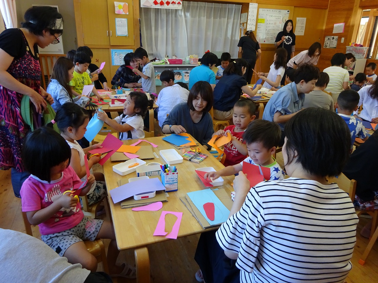息を合わせて、同じ足を出して動かすことが難しそうでしたが、みんな笑顔でゴールすることができました。 短い時間でしたが、お家の人と一緒に作ったり遊んだりと楽しく過ごせました。