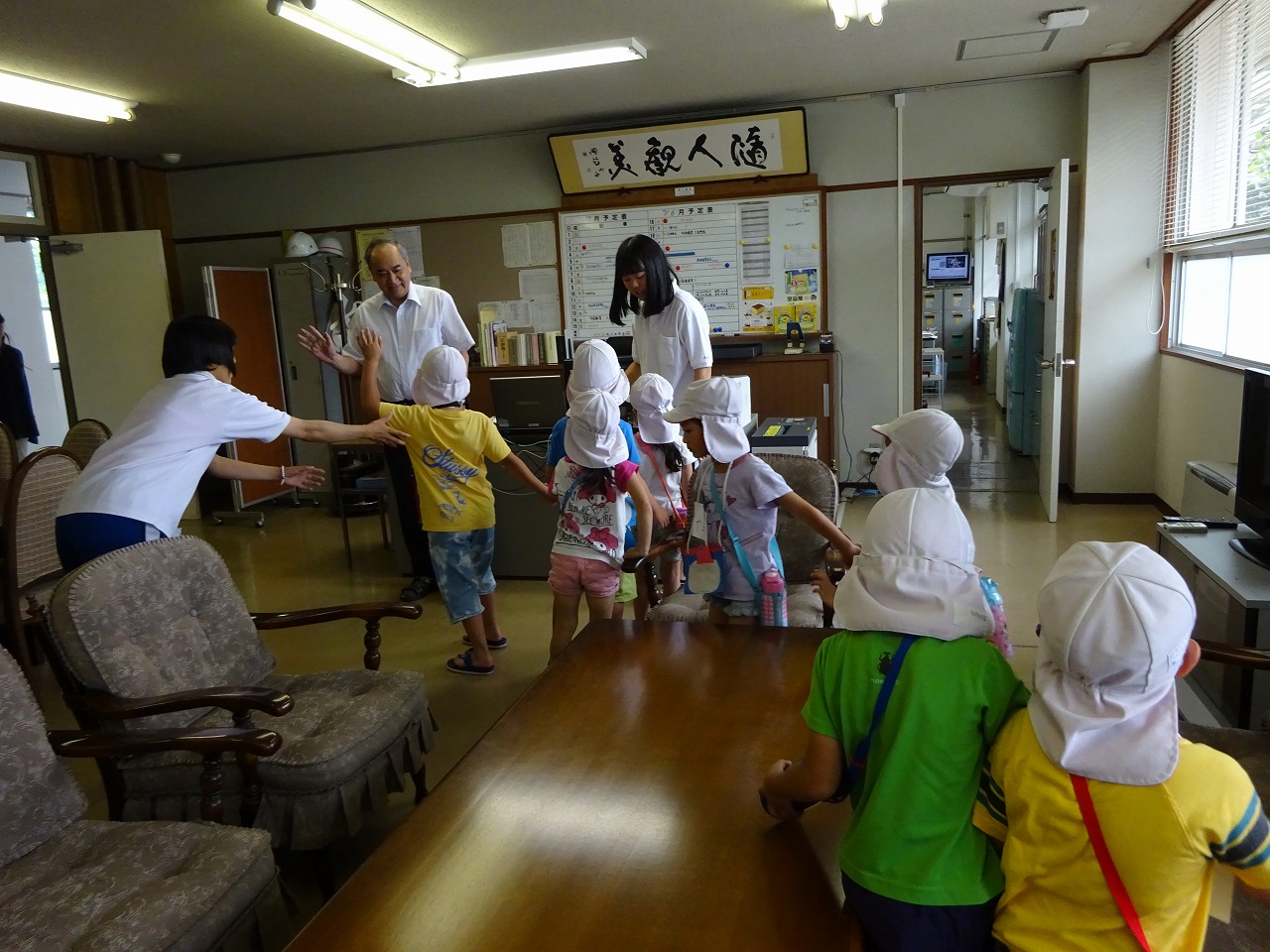 校長室ではふかふかのソファーにどっかり座らせてもらい、保健室では身体測定をしてもらい、図書館では絵本を見せてもらいとその度に宝をゲットしました。
