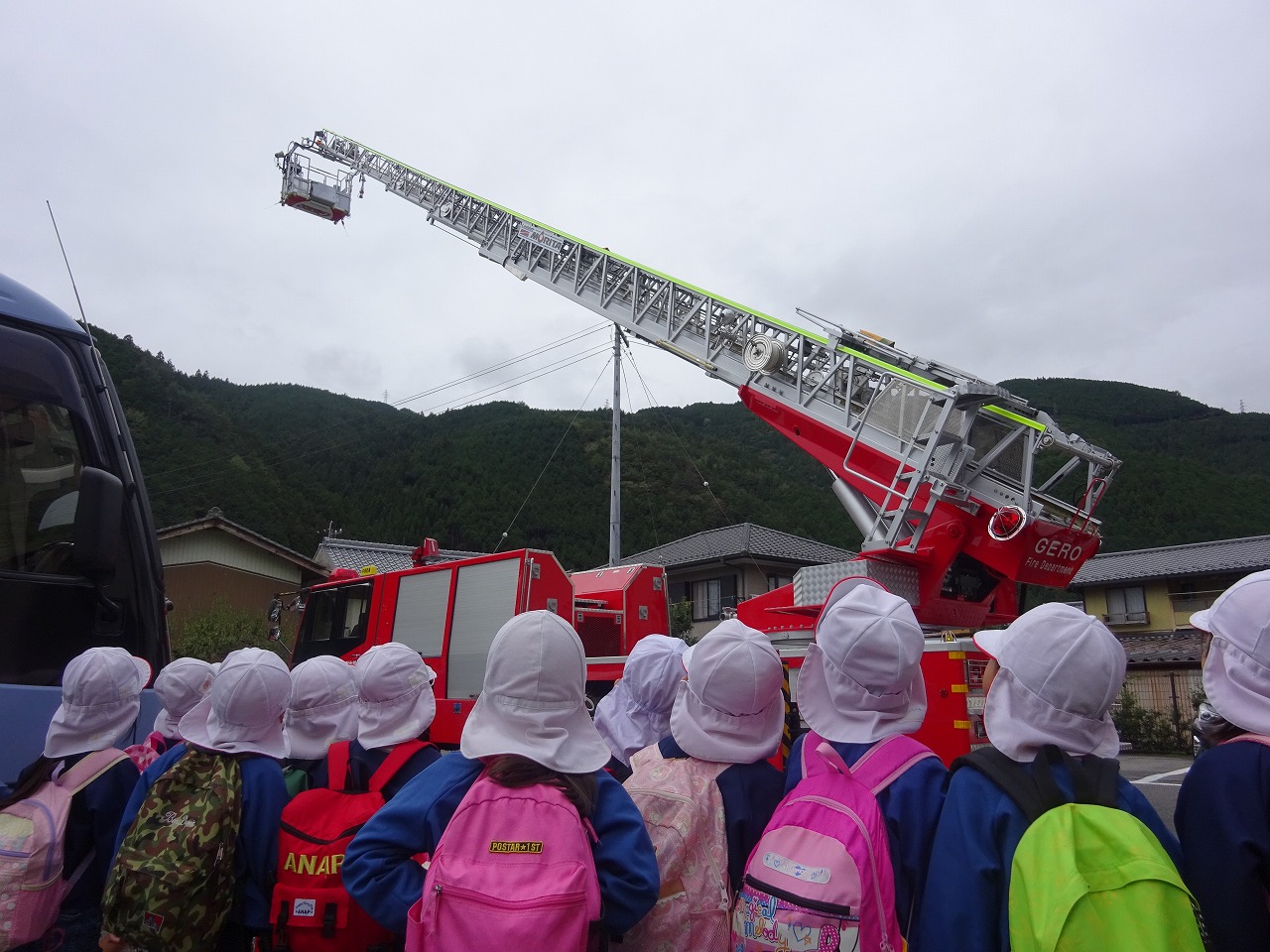 最後にはしご車に登らせてもらい、みんなで記念写真を撮ることができ良い経験ができました。