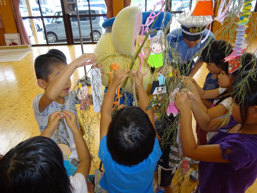 最後に交通安全の願い事を描いた短冊を笹に飾り、七夕の歌をみんなで歌いました。