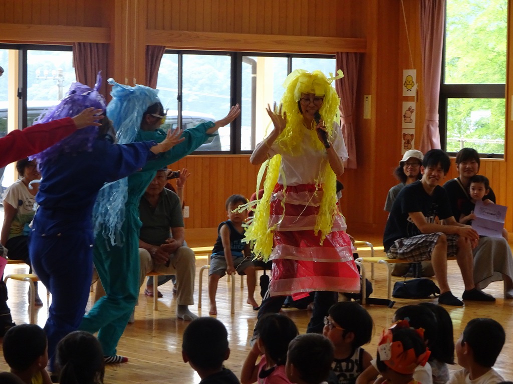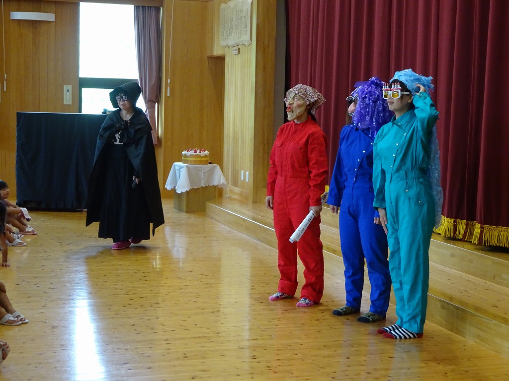 お楽しみでは、魔女が登場し保育士を連れ去ってしまったので、誕生会終了後、勇気だめしとして保育士を魔女の所から助け出してもらうよう子ども達に頑張ってもらいました。