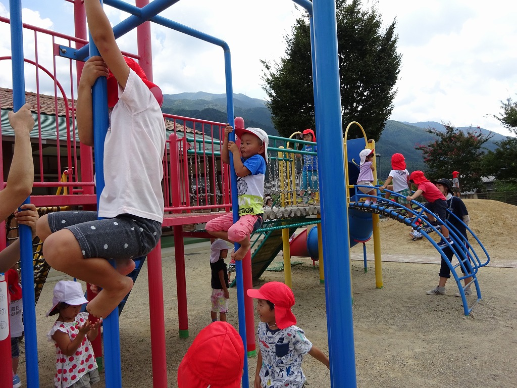年少さん6名は、一緒に体操をしてから園庭の遊具であそびました。