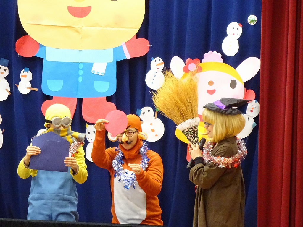 12月生まれのお友だちはみんなで23名でした。 インタビューもみんな頑張って答えてくれて、ろうそく一本の歌でお祝いをしました。 お楽しみはマジックショー、愉快なマジシャン達が風船や色水などのマジックを行い、「えー!」「なんで?」と不思議そうに見ていました。