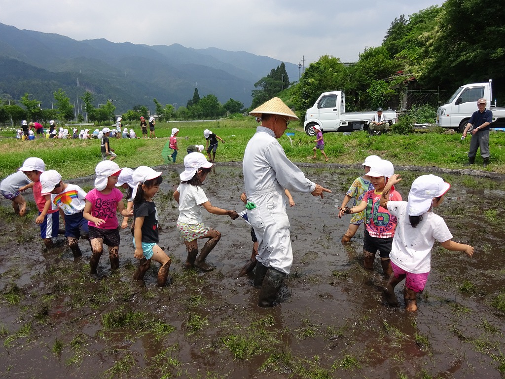 泥の感触を楽しみながら歩いたり、おたまじゃくしやタニシを獲ったり、夢中になって遊んでいました。