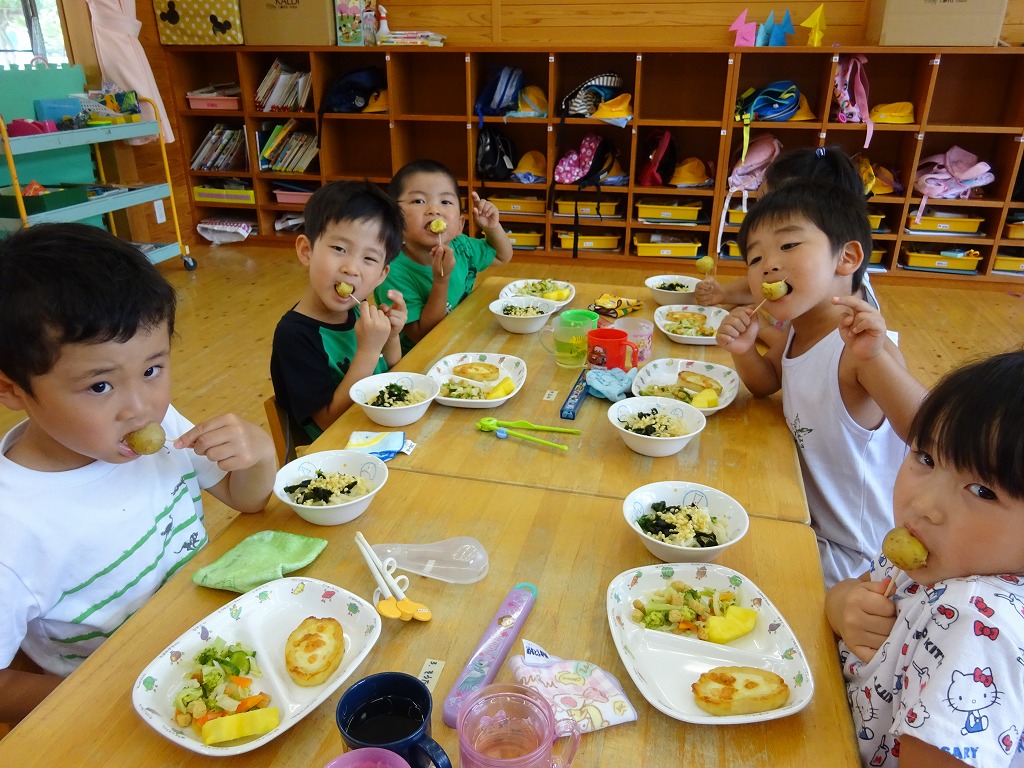 年長さんに続き、今日は年中さんがじゃがいもクッキングを行いました。