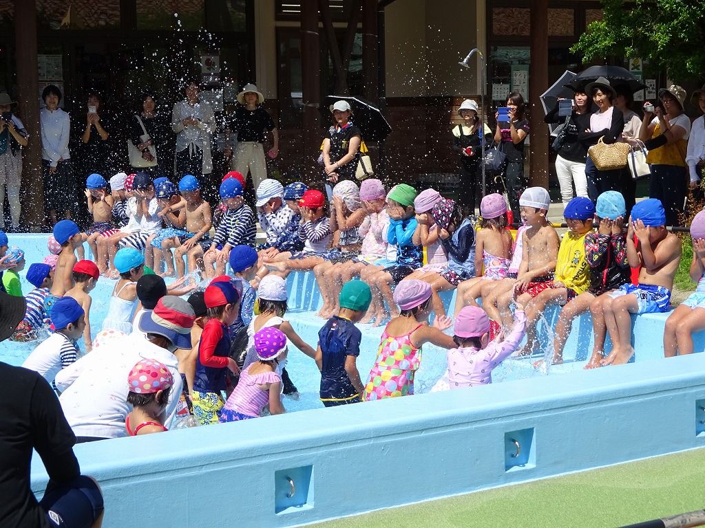 毎日頑張っている“ワニ泳ぎ”や“顔付け”を見てもらおうと張り切って挑戦し、お家の方を見付けて「できたよ!!」と嬉しそうでした。 昨年より一回りたくましくなった姿を見ていただけました。 暑い中、プール参観・虫歯予防教室・給食参観と長時間のご参加をいただき、ありがとうございました。