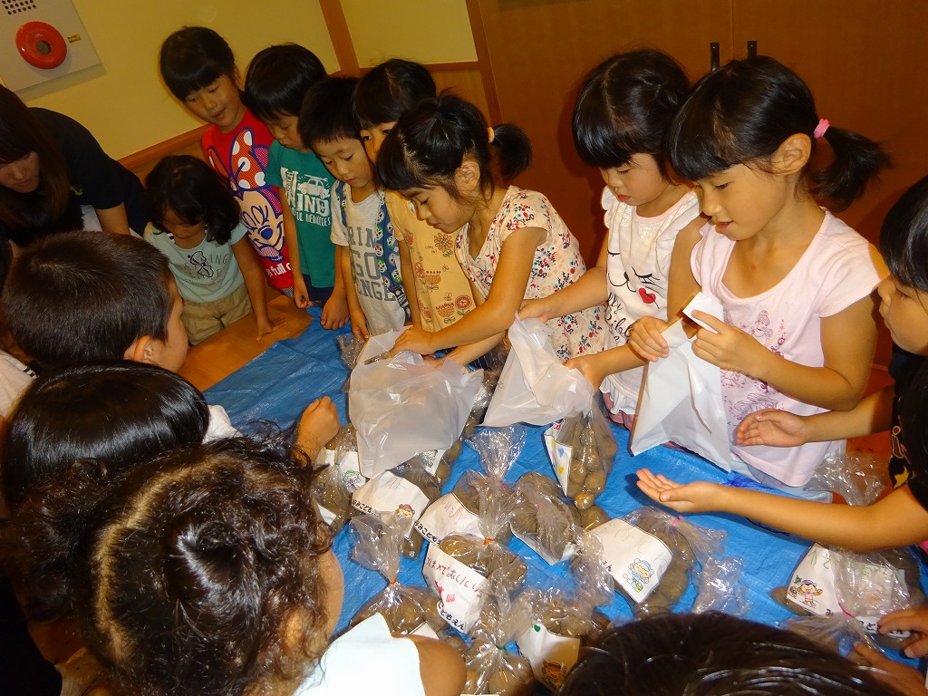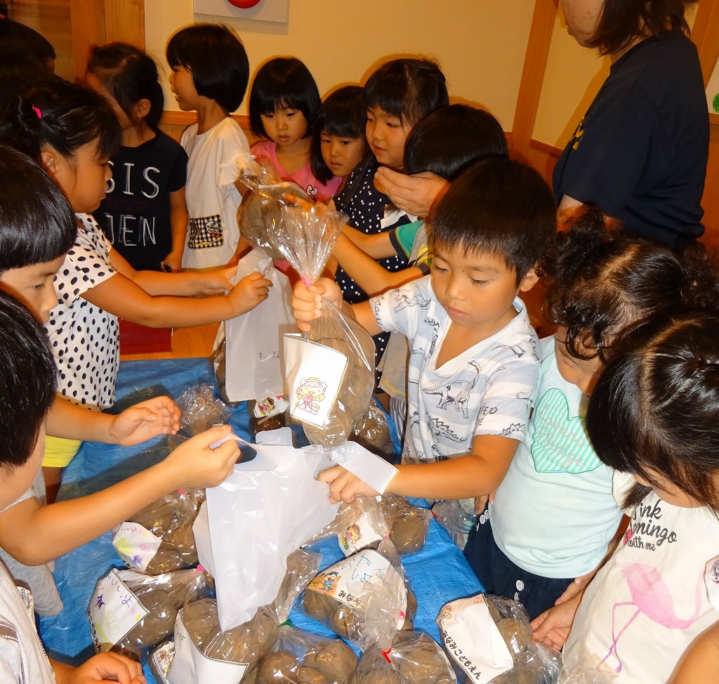 看板を立ててじゃがいもの袋を並べ、「いらっしゃいませ!」「100円です!」「美味しいですよ!」とお店屋さんをし、交代でお客さんもしながら朝市の雰囲気を楽しみました。