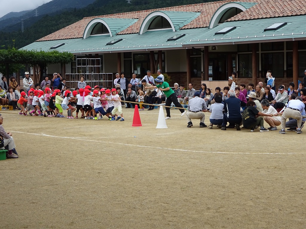 各学年が祖父母の方と対決した“玉入れ”(年少)“おにぎり運び”(年中)“綱引き”(年長)では、