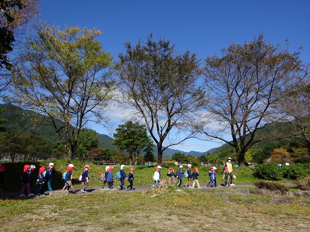 年中さんになってから初めての遠足♪ 子ども達は、とても楽しみにしていました。 年中さんは、年長さんと一緒に歩いて飛騨川公園へ行きました。