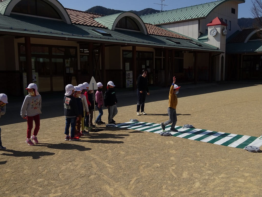 4月から1年生になる年長さん♪ 安全に登下校できるように、警察の方が交通安全について話をしてくださいました。 標識や信号の色、横断歩道の渡り方など、とても真剣に話を聞くことができました。