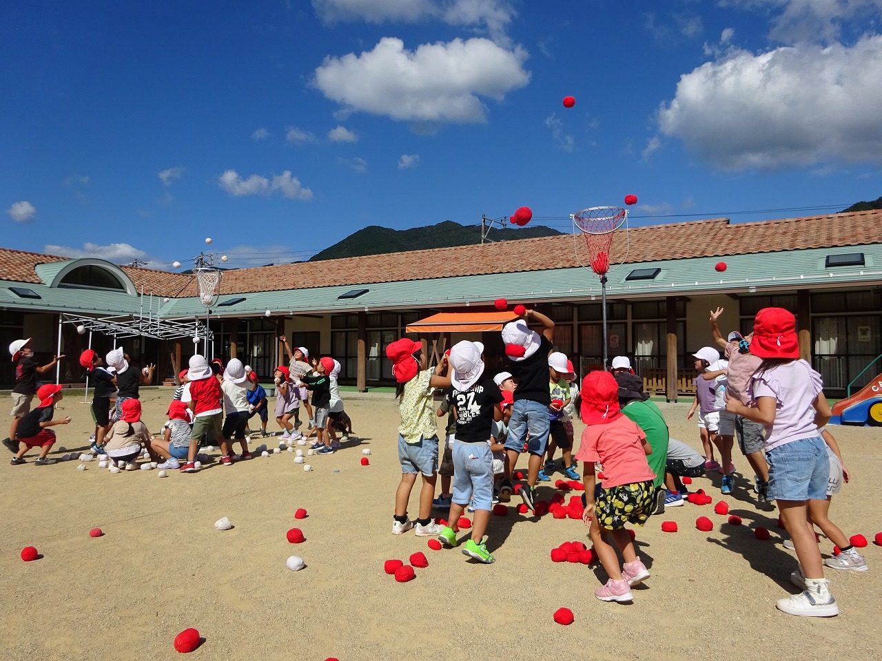 今月のお楽しみは、運動会の定番!「玉入れ」を行いました。 それぞれ学年ごとに工夫を凝らした色々な玉入れを、体をたくさん動かして楽しみました。 9月生まれのお友だち、お誕生日おめでとう!