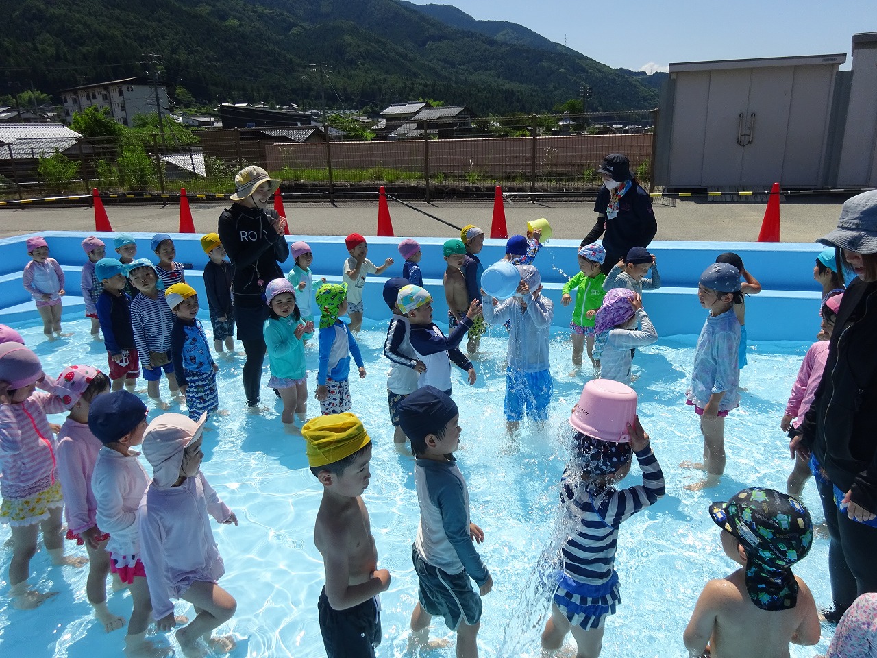 水遊びが好きな子が多く、顔に水がかかっても平気な子や、ワニ泳ぎに挑戦する子もいます。
