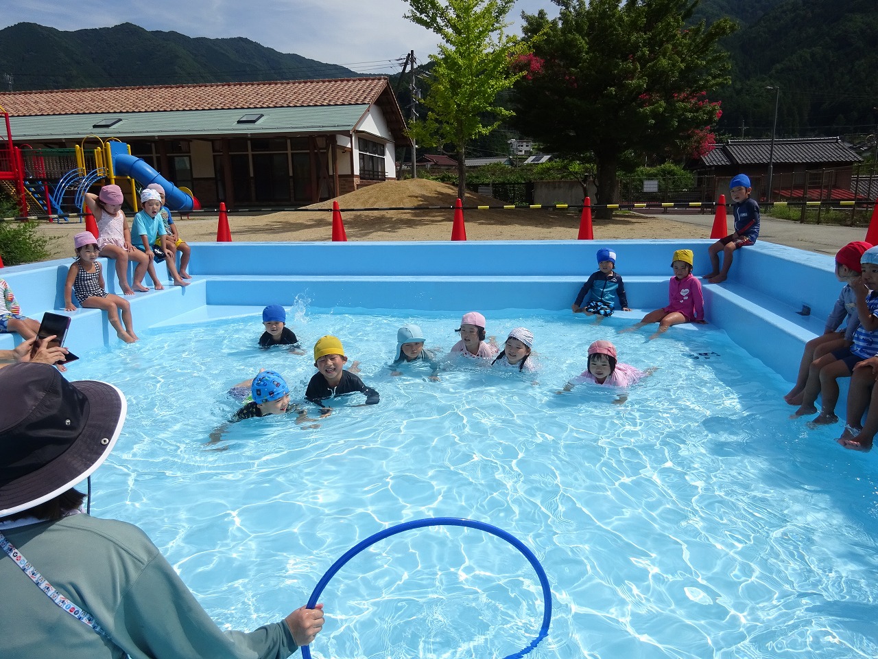 今月の誕生会は、学年ごとにプールで行いました。 いつもと少し違う誕生会に、ドキドキワクワクの子ども達でした。