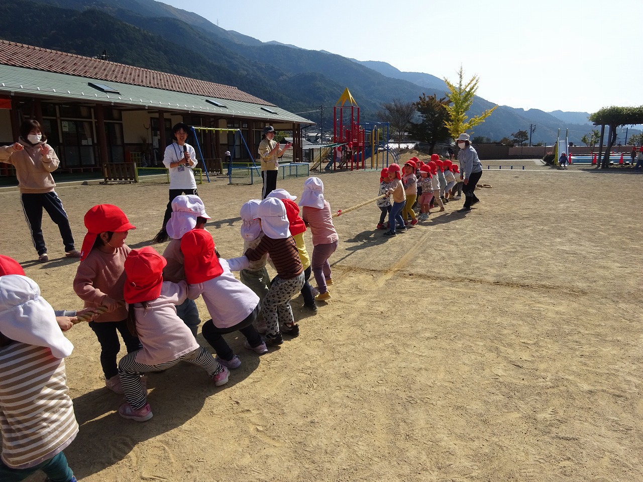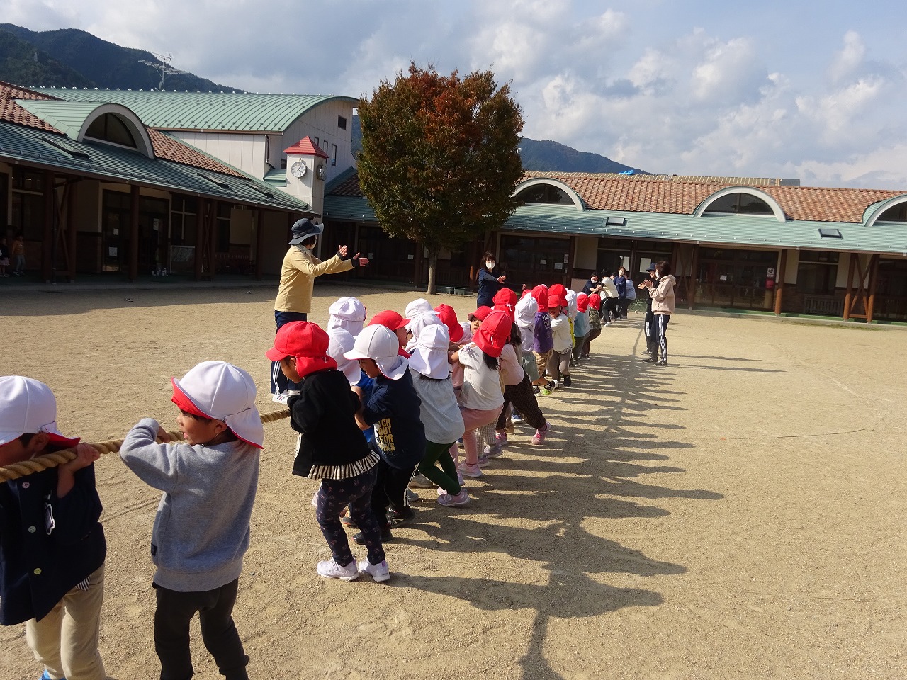 今月のお楽しみは、綱引きと玉入れでした。 未満児さんは、初めての玉入れを楽しみました。 年少さんと年中さんは、クラス対抗の綱引き、年長さんは、園児VS保育士の対戦をしました。 みんなで力を合わせてがんばりました。 賑やかな誕生会となりました。 10月生まれのお友だち、お誕生日おめでとう!!