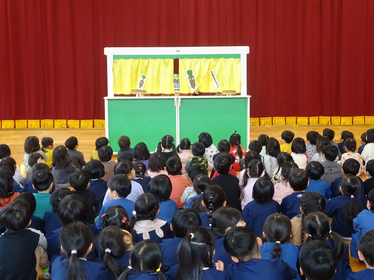 お楽しみは、「にんじんさんは、なぜ赤い」のペープサートでした。 お風呂に入ったような、ほっこりするストーリーを子ども達は夢中で見てくれました。 2月生まれのお友だち、お誕生日おめでとう!!