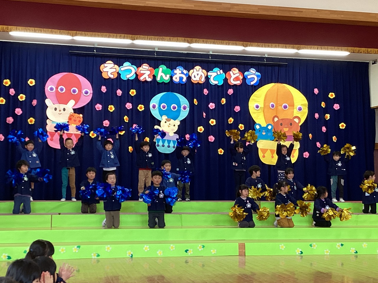 今日は、年長さんの卒園を前に、全園児でおわかれ会を開催しました。