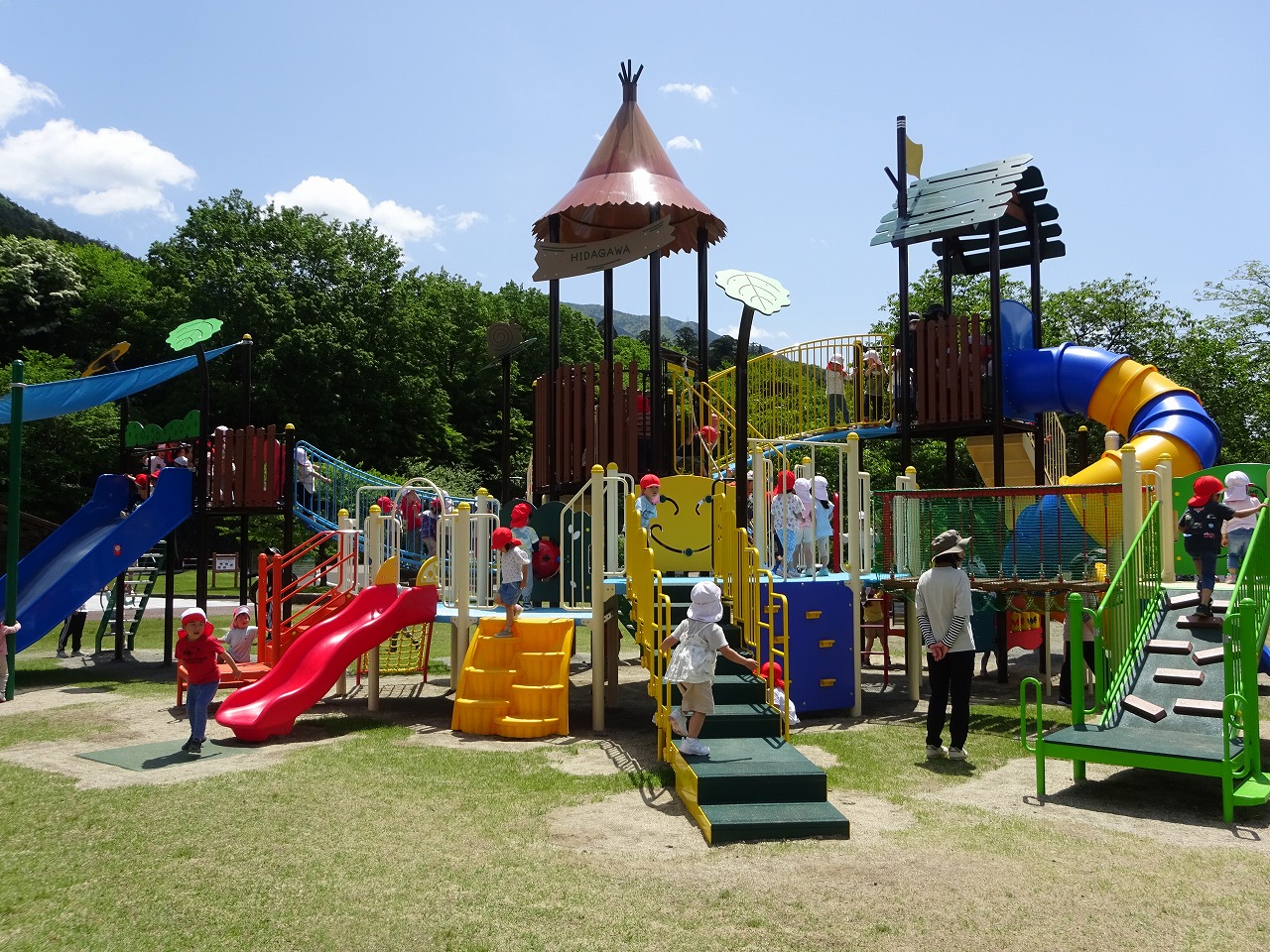公園では、年長さんや年中さん、お友だちと一緒に大型遊具で遊び、大喜びの子ども達でした。
