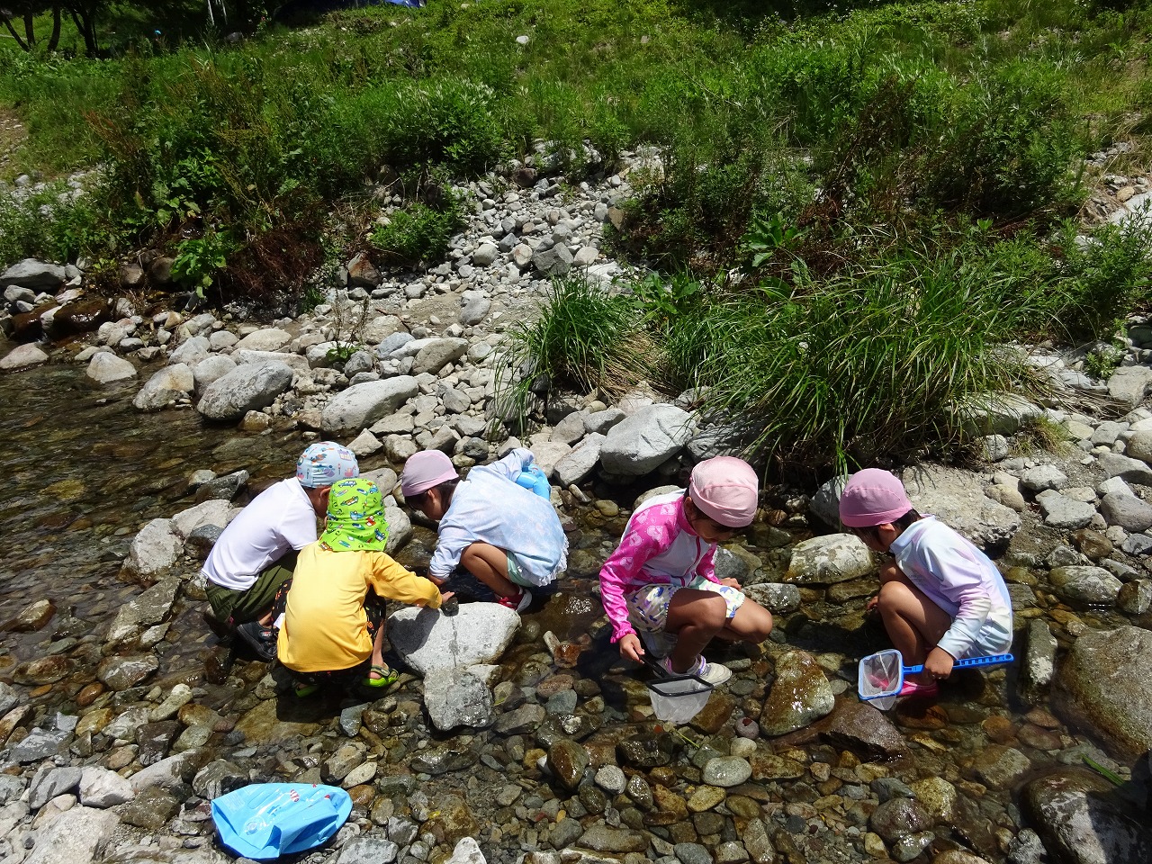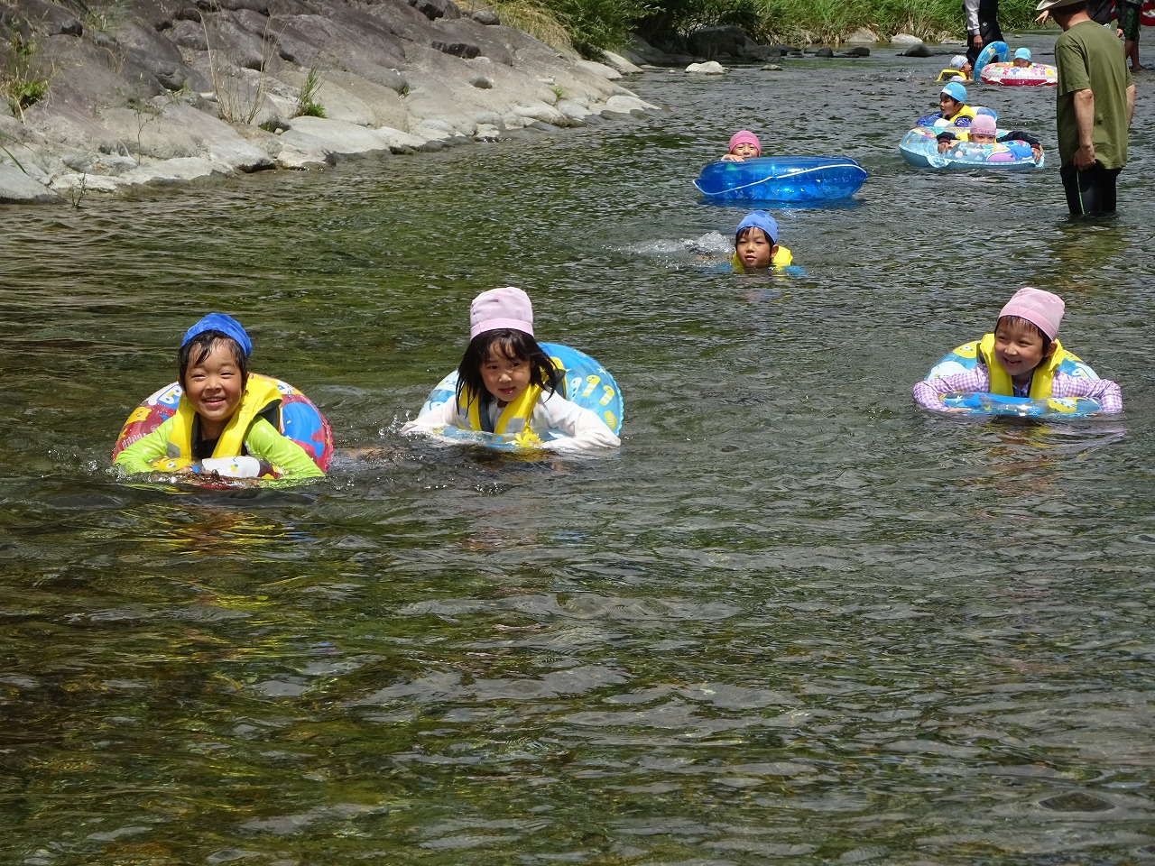 今日は、年長さん全員で山之口の川へ遊びに行ってきました。 浮き輪で川を流れたり、あかべらやおたまじゃくしを夢中になって探したり、大自然に囲まれてたくさん遊ぶことができました。