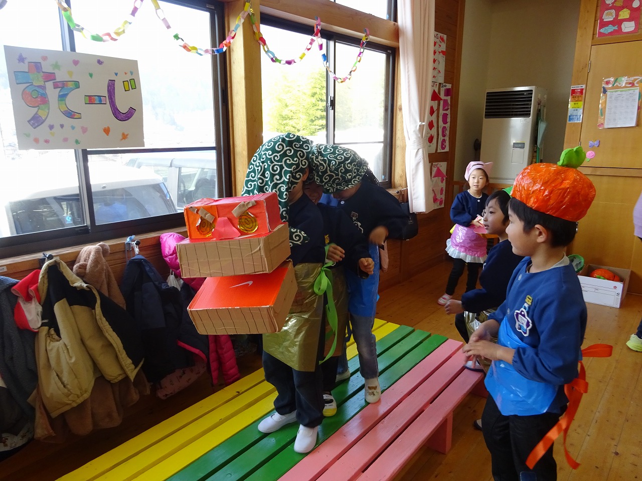 今年度は、子ども達のアイディアから、くじコーナー、ベビタピ、レストランでのステージ披露が誕生しました。 みんな生き生きと店員になりきって楽しんでいました。 「いらっしゃいませ〜」「これください」「10円です」と賑やかな声が響く楽しい時間となりました。