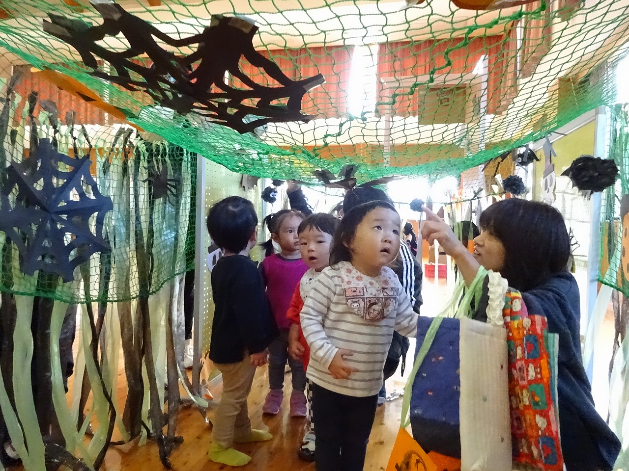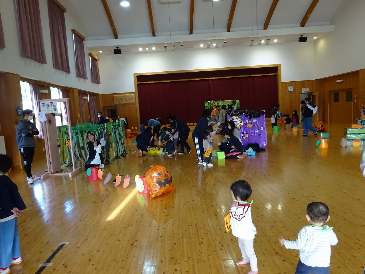 入口のトンネルを抜けると・・・ 見慣れた遊戯室が、ジブリやハロウィンの世界に大変身! 子ども達は、仮装して写真を撮ったり、ゲームに参加したりと、とても楽しそうでした。 役員の皆さん、高校生のお兄さんお姉さん、思い出に残るステキな時間をありがとうございました。
