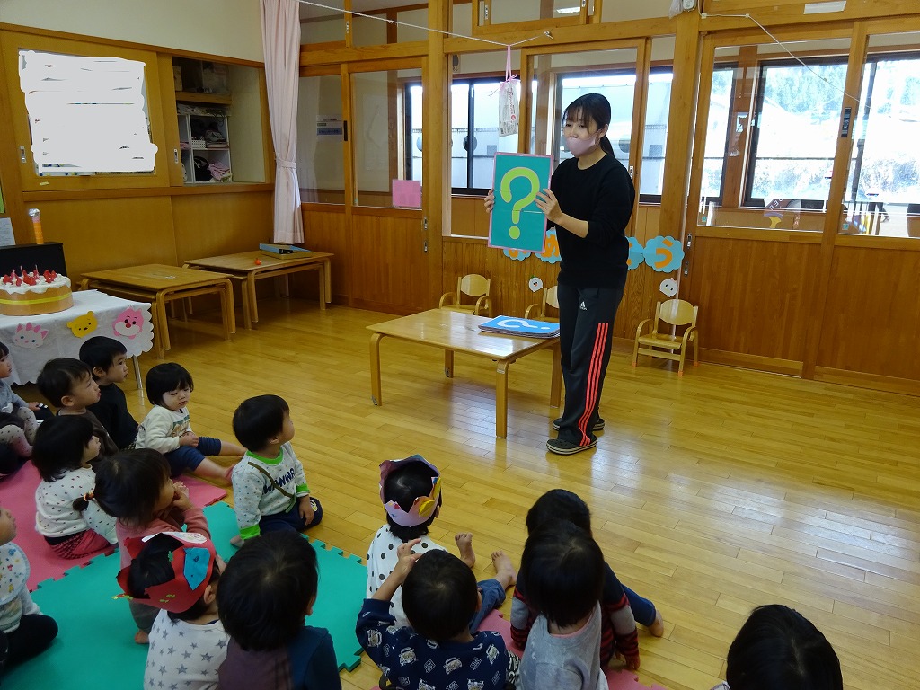 今月の誕生会は、クラス毎に行いました。 |