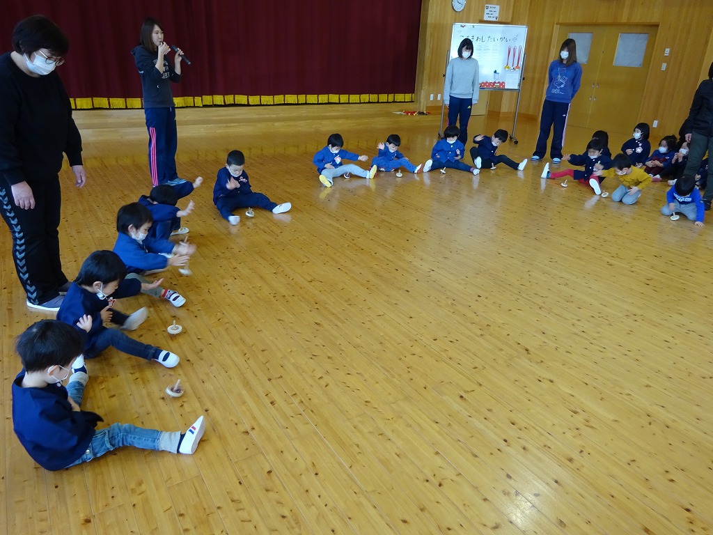 みんな楽しみにしていたこま回し大会が行われました。 |