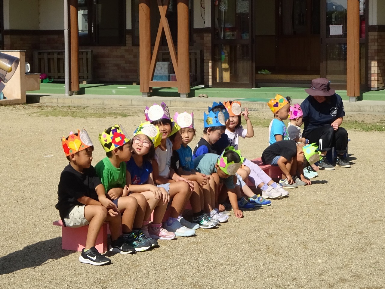 今月は園庭で誕生会を行いました。 |