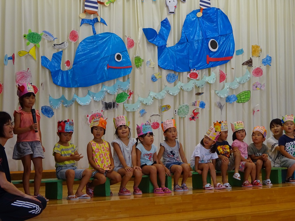 今月は年長さん3名、年中さん4名、年少さん5名、未満児さん2名の合計14名の誕生会を行いました。 |