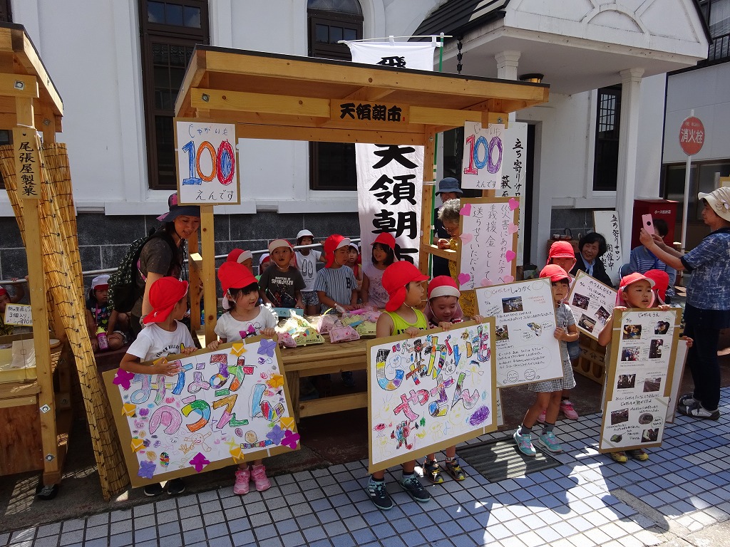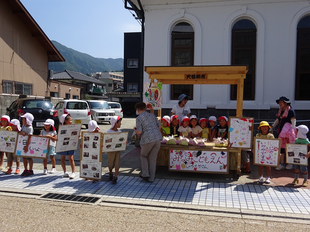 先日年長ゆり組さんが天領朝市でじゃがいもを販売しましたが、今回はたんぽぽ組さんが行ってきました。 |